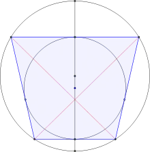 Dacă cercul este tangent la baze în punctele P și Q, atunci P, I și Q, unde I este centrului cercului înscris, sunt coliniare.[4]