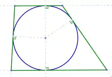 În trapezul circumscriptibil ABCD cu bazele AB și DC unghiurile AID și BIC sunt unghiuri drepte.[4]