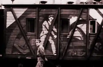 Un vagon pictat al unui „tren de agitație” sovietic dintr-un jurnal de știri din 1921