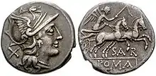 Sub Republica Romană, magistrații însărcinați cu baterea monedei sunt numiți tres viri aere argento auro flando feriundo[11], literal „trei bărbați pentru pregătirea și baterea pieselor de bronz, de argint și de aur”. Titlul lor este adesea abreviat pe piese pentru a se permite autentificarea lor în III VIR AAAFF[12], se găsește și forma III VIR A P F pentru tresviri ad pecuniam feriundum. Ordinea în care sunt date metalele nu este certă. Ordinea potrivit nobleței metalelor, în valoare ascendentă aere argento auro (adică bronz, argint apoi aur), explicată de gramaticul Valerius Probus[13], pare să fie cea mai curentă, dar nu este sistematică.[9] O altă ipoteză apărată de Cicero prezintă ordinea cronologică, adică metalele sunt citate în ordinea apariției lor în monetăria romană.[14]