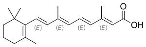 Tretinoina (acidul retinoic all-trans) este un medicament, fiind utilizat în tratamentul unor cancere (leucemia promielocitară acută) și în tratamentul acneei.[11][12][13][14] Calea de administrare pentru acnee este cea topică,[12] iar pentru leucemie este cea orală.[11]