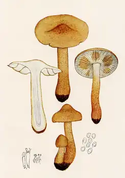 T. psammopus în diverse stadii: pălărie, lamele și picior