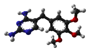 Trimetoprim este un antibiotic din clasa pirimidinelor care este utilizat în tratamentul unor infecții bacteriene, precum sunt infecțiile de tract urinar și otitele medii acute.[10] Este uneori utilizat în asociere cu sulfametoxazolul (trimetoprim/sulfametoxazol). Este un inhibitor de dihidrofolat reductază.[11]