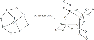 Când P4O6 reacționează cu ozonul, la o temperatură de 195 K în mediu de diclorometan, se formează un compus al fosforului, extrem de instabil, cu formula P4O18:[6]