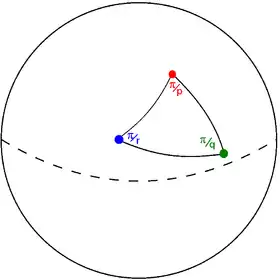 ![]() Triunghi Schwarz (p q r) pe o sferă |