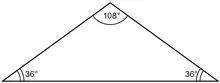 Triunghiul de aur este un triunghi isoscel ascuțitunghic cu unghiul apexului de:[2]