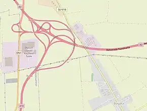 | Tip de construcție | Combinație de Trompetă spre dreapta și Jumătate de trifoi cu rampe tangente |