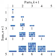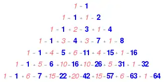 adică suma primilor k coeficienți binomiali de ordinul n.[1] Primele rânduri ale triunghiului lui Bernoulli sunt: