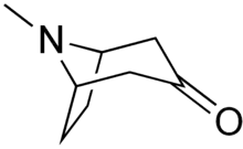 Tropinona este un alcaloid tropanic. A fost sintetizată cu randamente mari de Robert Robinson în anul 1917, cu scopul de a fi utilizată ca precursor de atropină.[3][4]