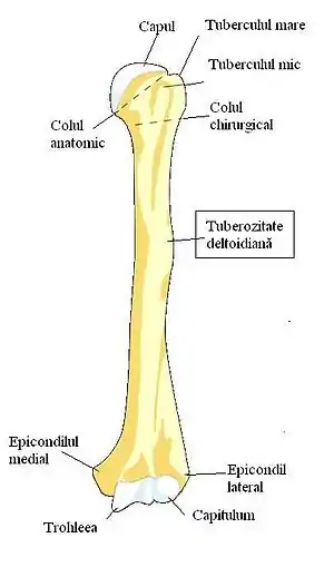 Tuberozitatea deltoidă este o regiune proeminentă a corpului humeral unde se inseră capătul distal al mușchiului deltoid.