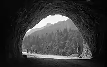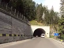 ![]() Cele două tuneluri văzute de pe DN12C, sensul Gheorgheni–Bicaz | |