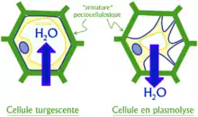 Comparație a unei celule turgescente și a uneia în timpul plasmolizei.