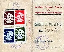 Carte de membru al asociației Turismul Popular din R.P.R. eliberată în 1949