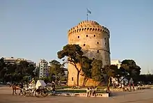 La începutul anilor 1990, Turnul Alb, monument situat în capitala regiunii grecești Macedonia, a devenit subiectul unei controverse mari între Grecia și Republica Macedonia, stat care pe atunci abia apăruse, după destrămarea Iugoslaviei. Controversa face parte dintr-o dispută mai largă legată de numele istoric al Macedoniei.