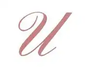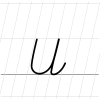 Litera Uu scrisă cu fontul „School Script Dashed”.