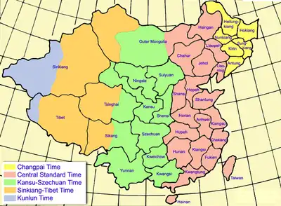 După Războiul Civil Chinez Republica Populară Chineză a introdus în 1949 fusul orar UTC+8 pentru toată țara.