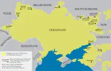 Ucraineni (українці, ukrainți, etnonimele istorice ruteni, rusinii, cazaci) sunt un popor european de ramura slavă, care în majoritatea lui trăiește în Ucraina, ei fiind a 6-a cea mai mare națiune din Europa.[20] Ucraineni mai pot fi întâlniți și în Polonia (sud-estul țării), Belarus (extremul sud al țării), Republica Moldova (în nord, inclusiv în Transnistria), România (vezi și articolul Ucrainenii din România), Rusia (întreg sudul Rusiei, precum și în Siberia), Kazahstan (în nord), Canada (Manitoba), Statele Unite ale Americii, Argentina, Brazilia, Australia etc.
