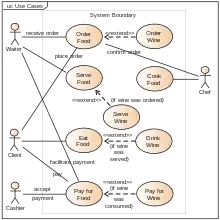 Datorită simplității ei este utilizată în special în discuțiile dintre firma dezvoltatoare de software și clienți sau utilizatori. Diagramele use case reprezintă interacțiunea dintre elementele exterioare unui sistem (numite și actori) și sistem. În cazul acestor diagrame se prezintă acțiunea desfășurată de sistem la interacțiunea actorului, însă modul în care sistemul desfășoare acea acțiune nu trebuie să fie reprezentat într-o astfel de diagramă (conceptul blackBox).