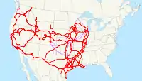 O hartă schematică a rețelei ferate „Union Pacific”