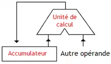 - Acumulatorul - registru de uz general care este utilizat de UAL pentru stocarea unuia dintre operanzi și pentru rezultatul operației; are un rol cu totul special în comparație cu celelalte registre de uz general.