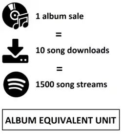 Unitatea echivalentă unui album conform RIAA: 1 album=10 descărcări digitale=1500 de stream-uri.