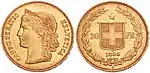 Elveția, 20 franci elvețieni (1890)