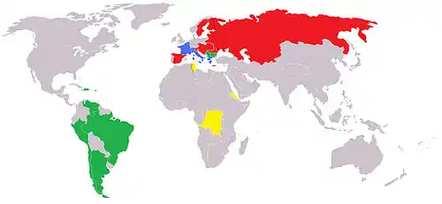 Țări aliniate (în mod unilateral) Serbia, Bulgaria, Venezuela, Peru-ul, Republica Dominicană, Haitiul, Indiile Occidentale Daneze, Argentina, Brazilia, Chile