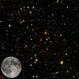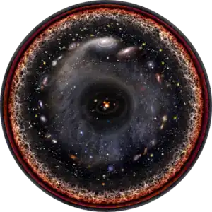 Universul observabil este o regiune sferică a universului care cuprinde toată materia care poate fi observată de pe Pământ sau de către telescoapele spațiale și sondele de explorare. Există cel puțin 2 trilioane de galaxii în universul observabil.[8][9] Presupunând că universul este izotrop (uniform în orice direcție), distanța până la marginea universului observabil este aproximativ aceeași în toate direcțiile. Adică universul observabil are un volum sferic centrat pe observator. Fiecare loc din univers are propriul său univers observabil, care se poate suprapune sau nu cu cel centrat pe Pământ.