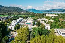 ![]() Luftbildaufnahme der Universität Klagenfurt und des angrenzenden Lakeside Science & Technology Parks | |