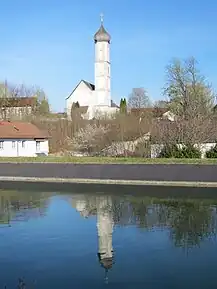 La vest, la marginea localității, curge spre nord râul Isar. Malul drept, aflat pe teritoriul comunei, este ceva mai înălțat decât cel stâng. Nu departe de localitate se află lacul Feringa (Feringasee), escavat pentru obținerea balastului necesar construirii autostrăzii A99, este acum amenajat pentru agrement. Comuna este parcursă și de canalul Isar mijlociu, care face parte din sistemul de amenajare hidrografică a râului Isar.