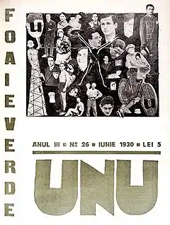 unu. avangarda literară a fost o revistă literară avangardistă condusă de Sașa Pană și Moldov, tipărită la București și Dorohoi între aprilie 1928 și decembrie 1932, care împletea elemente de dadaism și suprarealism. Inițial, publicația urma să fie numită doi la al doilea număr, trei la al treilea număr etc., dar numele său a rămas până în 1932 unu.