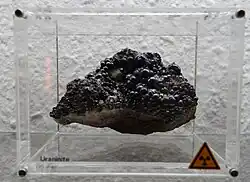 ![]() Specimen de uraninit înalt cristalizat, Trebilcock Pit, Topsham, Maine SUA | |