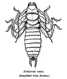 Arixeniina este reprezentată prin două genuri, Arixenia și Xeniaria, totalizănd cinci specii. Ca și Hemimerina, sunt oarbe și fără aripi, cu cerci filiformi segmentați. Hemimerina sunt ectoparaziți vivipari, preferând blana rozătoarelor africane din genurile Cricetomys sau Beamys.[36] Hemimerina are de asemenea două genuri, Hemimerus și Araeomerus, cu un total de 11 specii.[36]