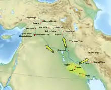 - Algaze, Guillermo (). „The end of prehistory and the Uruk period”. În Crawford, Harriet. The Sumerian World (PDF). London: Routledge. pp. 68–95. ISBN 9781138238633. Accesat în .[nefuncțională]