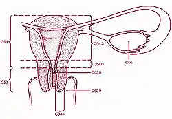 ![]() Vedere frontală schematică a anatomiei feminine | |