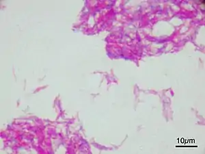 ![]() Imagine microscopică a bacilului Calmette–Guérin, colorație Ziehl-Neelsen | |