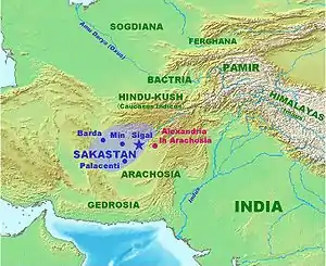 Încă pe la 500 î.e.n., secțiunile vestice ale Văii Fergana făceau parte din regiunea Sogdiana(d), dominată dinspre vest și credincioasă Imperiului Ahemenid în vremea lui Darius cel Mare. Regiunea Sogdiana, independentă și războinică,[3] forma o regiune de frontieră care separa perșii ahemenizi de sciții nomazi de la nord și est.[4] Stânca Sogdiană(d) sau Stânca lui Ariamazes, o cetate din Sogdiana, a fost capturată în 327 î.e.n. de forțele lui Alexandru cel Mare; după o extinsă campanie de supunere a rezistenței din Sogdiana și după fondarea unor avanposturi militare pe care le-a ocupat cu veteranii săi greci, Alexandru a unit Sogdiana cu Bactria într-o singură satrapie.