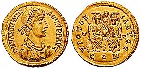 Solidus roman cu efigia lui Valentinian al II-lea