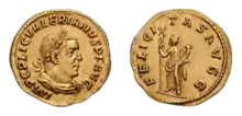 ![]() Valerian, profil, pe un aureus dedicat zeiței Fortuna | |