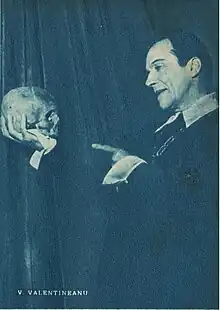 V. Valentineanu în rolul Hamlet din piesa omonimă a lui Shakespeare, 1942.