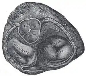 Valva aortică se află între ventriculul stâng și aortă. Valva aortică are trei cuspide. În timpul sistolei ventriculare presiunea crește în ventriculul stâng. Când presiunea în ventriculul stâng se ridică peste presiunea din aortă valva aortică se deschide, permițând sângelui să iasă din ventriculul stâng în aortă. Atunci când sistola ventriculară se termină, presiunea în ventriculul stâng scade rapid. Atunci când presiunea scade în ventriculul stâng, presiunea aortică forțează valva aortică să se închidă. Închiderea valvei aortice contribuie la formarea zgomotului cardiac II, (S2).