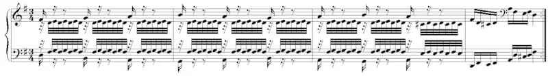 | Variatio 29. a 1 ô vero 2 Clav. Variațiunea constă în cea mai mare parte din acorduri masive alternând cu secțiuni de arpegii strălucitoare împărțite între cele două mâini. |