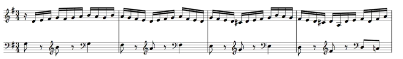 | Variatio 8. a 2 Clav. Alt canon cu mâini încrucișate, în metru ; ușor de executat pe un clavecin cu două manuale, dar dificil la pian. |