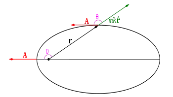 Planul traiectoriei mișcarării corpului(punctului material) este perpendicular pe vectorul momentului cinetic L, care este constant; acest lucru poate fi exprimat matematic prin ecuația data de produsul scalar r ⋅ L = 0; deoarece A se află în acest plan, A ⋅ L = 0.