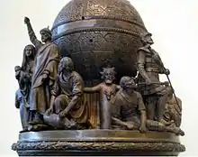Veles reprezentat cu un cap de vacă pe piept, monumentul Mileniului din Rusia