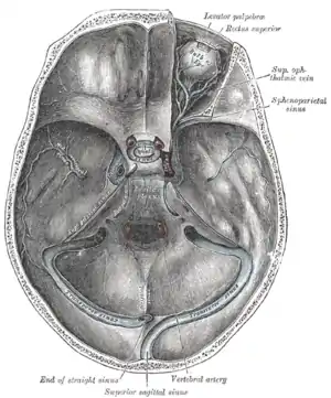 ![]() Venele orbitei (vena oftalmică superioară este vizibilă sus) | |