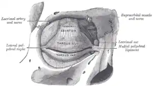 Vasele supraorbitale și ligamentele (vedere frontală)