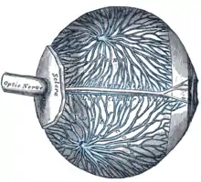 ![]() Venele coroidei (venele vorticoase etichetate) | |