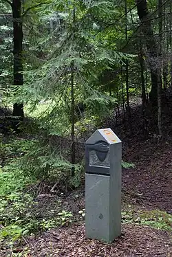 Bornă kilometrică de andezit, marcaj al traseului de drumeții de lungă distanță Via Transilvanica