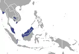 În Cambodgia a fost semnalată în apropierea Lacului Tonlé Sap(en)[traduceți] în pădure inundată situată la altitudine joasă.[10] În Vietnam a fost observată și înregistrată cu ajutorul aparatelor fotografice capcane(en)[traduceți] în anul 2000 în Parcul Național U Minh Thượng(en)[traduceți], unde au fost găsite de asemenea excremente de vidră cu solzi de pește și rămășițe de crab.[11] În 2008 a fost înregistrată și în Parcul Național U Minh Hạ(en)[traduceți].[12]
